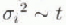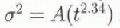 with A = 1.08 X 10−6. The variance (ordinate) is given in units of m2, and the time (abscissa) in units of s.
