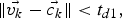 $\vec{c_{k}}$ of an already existing cluster in the same frame is smaller than a threshold t d1 and if furthermore the difference in their displacements