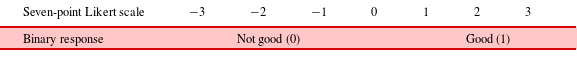 Other scales could have been selected. The easiest scale for users to use would be one with only three values, e.g., bad, neutral and good. However, this would not be sufficient to drive the GA, so a larger scale was warranted. Although a scale with a large range would be better for the GA, it would make it difficult for users to understand and differentiate quality levels. For example, in a