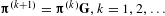 $\boldsymbol{\unicode[STIX]{x1D70B}}^{(k+1)}=\boldsymbol{\unicode[STIX]{x1D70B}}^{(k)}\mathbf{G},k=1,2,\ldots$
