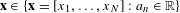 $\mathbf{x}\in \{\mathbf{x}=[x_{1},\ldots ,x_{N}]:a_{n}\in \mathbb{R}\}$