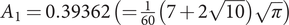 $ {A}_1=0.39362\;\left(=\frac{1}{60}\left(7+2\sqrt{10}\right)\sqrt{\pi}\right) $,