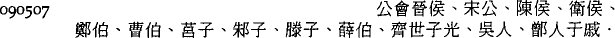 55. A very limited number of exceptional entries appear in which noblemen are referred to by official position rather than by the regular form. Examples appear in Chéng 8 (060809 and 060810) and Chéng 15 (061502), all in reference to noblemen from Söng. This form is not regularly employed and hence does not constitute a separate style of reference; these are simply unusual, formally irregular records.