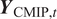 $ {\boldsymbol{Y}}_{\mathrm{CMIP},t} $