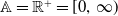 $\mathbb{A} = \mathbb{R}^+ = \lbrack 0,\,\infty )$