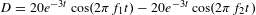 $D=20e^{-3t}\cos (2\unicode[STIX]{x1D70B}f_{1}t)-20e^{-3t}\cos (2\unicode[STIX]{x1D70B}f_{2}t)$
