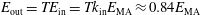 $E_{\mathrm{out}}=TE_{\mathrm{in}}=Tk_{\mathrm{in}}E_{\mathrm{MA}} \approx 0.84E_{\mathrm{MA}}$.
