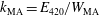 $k_{\mathrm{MA}}=E_{420}/W_{\mathrm{MA}}$, where
