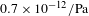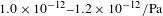 $1.0\times 10^{-12}{-}1.2\times 10^{-12}/\text{Pa}$. The value