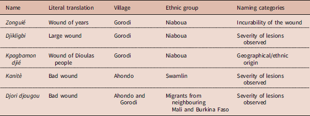 Table 2 Common names used for Buruli ulcer by communities of Ahondo and Gorodi