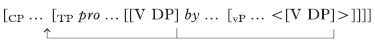 What Belletti (Reference Belletti and Svenonius2009) proposes is that in order for children to overcome this problem they adopt what is called by Collins a ‘smuggling approach. In this approach, the verb in the passive construction and the internally merged direct object are moved first, and beyond the position of the subject, becoming the head of the RC and thus avoiding the locality or RM violation that the presence of the external argument (subject) would evoke, as in (19).
