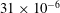 $F=31\times 10^{-6}/F=15\times 10^{-6}$
