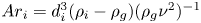 Finally, re-substitution of the ${Ar}_i$ definition and defining the relative density ratio to be