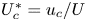 This expression is a quadratic equation that is solved for $U_c^{*}$ with the positive solution