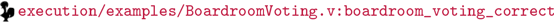 When creating a vote message using make_vote_msg the function is given as input the private vote: either ‘for‘, represented as 1, and ‘against‘, represented as 0. We prove that the contract tallies the vote correctly assuming that the functions provided by the boardroom voting contract are used. Note that the contract accepts the tally_votes message only when it has received votes from all public parties, and as a result stores the computed tally in its internal state. We give here a simplified version of the full correctness statement which can be found in the attached artifact.
