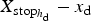 (9) $$\displaystyle{{{x_{{\rm stop}}}({h_{\rm d}}) - {x_{\rm d}}} \over {{x_{{\rm sto}{{\rm p}_{\rm 0}}}} - {x_{\rm d}}}} = 1 - \alpha \displaystyle{{{h_{\rm d}}} \over {{h_0}}}.$$