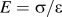 $E = {\sigma \mathord{\left/{\vphantom {\sigma \varepsilon }} \right\kern-\nulldelimiterspace} \varepsilon }$