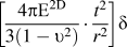 $\left[ {{{4\pi {{\rm{E}}^{2{\rm{D}}}}} \over {3(1 - {\upsilon ^2})}} \cdot {{{t^2}} \over {{r^2}}}} \right]\delta$
