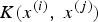 (13) $$K({\bf x}^{({i})}) = \left[ {\matrix{ {K({\bf x}^{({i})},{\bf x}^{({1})})} \cr \cdots \cr {K({\bf x}^{({i})},{\bf x}^{({m})})} \cr } } \right]$$