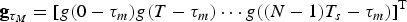 where ${{\bf g}}_{\tau_{M}}=\lsqb g\lpar 0-\tau_{m}\rpar g\lpar T-\tau_{m}\rpar \cdots g\lpar \lpar N-1\rpar T_{s}-\tau_{m}\rpar \rsqb ^{\rm T}$ .