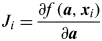 $J_i = \displaystyle{{\partial f\,( {{a},{x}_i} )} \over {\partial {a}}}$ is the gradient of f with respect to a.