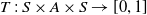 $T\,: \,S\times A\times S\rightarrow[0,1]$