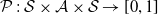 $ \mathcal{P}\,{:}\, \mathcal{S} \times \mathcal{A} \times \mathcal{S} \rightarrow[0,1]$