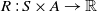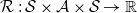 $\mathcal{R}\,{:}\, \mathcal{S} \times \mathcal{A} \times \mathcal{S} \rightarrow \mathbb{R}$