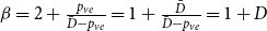 \begin{align*} \beta = 1+D = 1+\frac{\bar{D}+\gamma \bar{V}}{\bar{D}-m p_{ve}} = 2 + \frac{\gamma \bar{V} + m p_{ve}}{\bar{D} - m p_{ve}}. \end{align*}