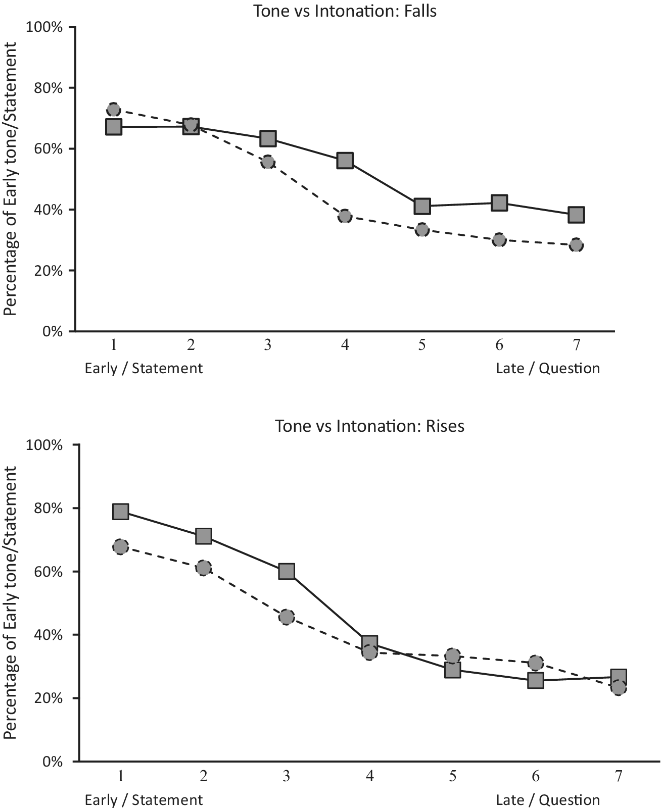 ) and tone continua (Early vs. Late: