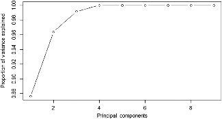 Since the variables, initially identified to impact profitability (Table 3), were strongly correlated leading to degrading multicollinearity (causing point estimates to be imprecise), principal component analysis was used to determine the appropriate number of explanatory variables in the regression model. Four principal components explained roughly 98% of the variation in the explanatory variables (Figure 3). This suggested the potential to eliminate several explanatory variables (1) using their statistical significance/contribution to model performance such that explanatory variables with |t-stat| < 1 were dropped (the adjusted R 2 criterion); and (2) by examining the extent of correlation among explanatory variables to avoid redundancy due to strong multicollinearity. The results suggested that hay price was statistically insignificant in every period analyzed, and that hay sold was highly correlated with weather as expected since the weather index drove forage production. Hay sold remained in the model given its ease of interpretation relative to the weather index and its larger |t-stat|. Finally, calving season was removed because the primary effect of a spring-calving season is higher expected breeding failures that result in fewer head sold. Therefore, head sold captured the majority of calving season effects, while cattle price captured seasonal price effects resulting from selling calves in the fall rather than the spring.