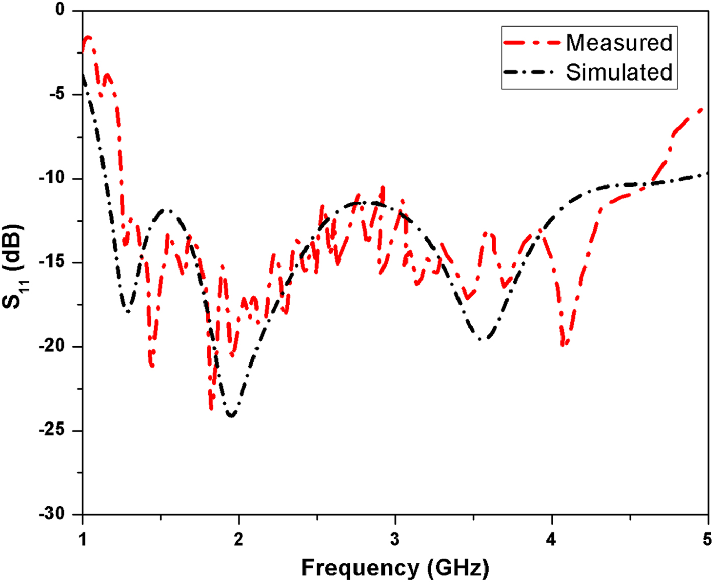 Fig. 4. Simulated and measured S 11 of the proposed antenna.
