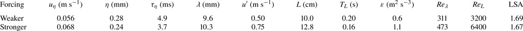 $\eta$, and they were dropped at different times in temporally decaying turbulence in order to widen the range of turbulent conditions,