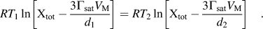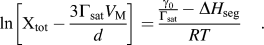 Here, solute concentration (C tot, mol/m3) relates to molar volume, V M (m3/mol) such that X tot = C tot ·V M. Considering X tot = 0.04 (4 mol%) for the two different temperatures, Eq. (3) can be expressed as: