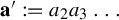 $\mathbf {a}':=a_2a_3\ldots $