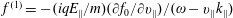 $$\begin{eqnarray}\displaystyle f_{r}^{(1)} & = & \displaystyle -\frac{iq_{r}}{m_{r}}e^{i\unicode[STIX]{x1D706}_{r}\sin \unicode[STIX]{x1D719}}\mathop{\sum }_{n=-\infty }^{\infty }\frac{e^{-in\unicode[STIX]{x1D719}}}{\unicode[STIX]{x1D714}-k_{\Vert }v_{\Vert }-n\unicode[STIX]{x1D6FA}_{r}}\nonumber\\ \displaystyle & & \displaystyle \times \,\left\{\left[\frac{n\text{J}_{n}(\unicode[STIX]{x1D706}_{r})}{\unicode[STIX]{x1D706}_{r}}E_{x}+i\text{J}_{n}^{\prime }(\unicode[STIX]{x1D706}_{r})E_{y}\right]\left[\left(1-\frac{k_{\Vert }v_{\Vert }}{\unicode[STIX]{x1D714}}\right)\frac{\unicode[STIX]{x2202}f_{0r}}{\unicode[STIX]{x2202}v_{\bot }}+\frac{k_{\Vert }v_{\bot }}{\unicode[STIX]{x1D714}}\frac{\unicode[STIX]{x2202}f_{0r}}{\unicode[STIX]{x2202}v_{\Vert }}\right]\right.\nonumber\\ \displaystyle & & \displaystyle \left.+\,E_{z}\text{J}_{n}(\unicode[STIX]{x1D706}_{r})\left[\frac{\unicode[STIX]{x2202}f_{0r}}{\unicode[STIX]{x2202}v_{\Vert }}-\frac{n\unicode[STIX]{x1D6FA}_{r}}{\unicode[STIX]{x1D714}v_{\bot }}\left(v_{\bot }\frac{\unicode[STIX]{x2202}f_{0r}}{\unicode[STIX]{x2202}v_{\Vert }}-v_{\Vert }\frac{\unicode[STIX]{x2202}f_{0r}}{\unicode[STIX]{x2202}v_{\bot }}\right)\right]\right\}.\end{eqnarray}$$