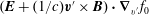 $$\begin{eqnarray}\displaystyle f_{r}^{(1)} & = & \displaystyle -\frac{iq_{r}}{m_{r}}\mathop{\sum }_{n=-\infty }^{\infty }\mathop{\sum }_{m=-\infty }^{\infty }\frac{e^{i(m-n)\unicode[STIX]{x1D719}}}{\unicode[STIX]{x1D714}-k_{\Vert }v_{\Vert }-n\unicode[STIX]{x1D6FA}_{r}}\text{J}_{m}(\unicode[STIX]{x1D706}_{r})\nonumber\\ \displaystyle & & \displaystyle \times \,\left\{\left[\frac{n\text{J}_{n}(\unicode[STIX]{x1D706}_{r})}{\unicode[STIX]{x1D706}_{r}}E_{x}+i\text{J}_{n}^{\prime }(\unicode[STIX]{x1D706}_{r})E_{y}\right]\left[\left(1-\frac{k_{\Vert }v_{\Vert }}{\unicode[STIX]{x1D714}}\right)\frac{\unicode[STIX]{x2202}f_{0r}}{\unicode[STIX]{x2202}v_{\bot }}+\frac{k_{\Vert }v_{\bot }}{\unicode[STIX]{x1D714}}\frac{\unicode[STIX]{x2202}f_{0r}}{\unicode[STIX]{x2202}v_{\Vert }}\right]\right.\nonumber\\ \displaystyle & & \displaystyle \left.+\,E_{z}\text{J}_{n}(\unicode[STIX]{x1D706}_{r})\left[\frac{\unicode[STIX]{x2202}f_{0r}}{\unicode[STIX]{x2202}v_{\Vert }}-\frac{n\unicode[STIX]{x1D6FA}_{r}}{\unicode[STIX]{x1D714}v_{\bot }}\left(v_{\bot }\frac{\unicode[STIX]{x2202}f_{0r}}{\unicode[STIX]{x2202}v_{\Vert }}-v_{\Vert }\frac{\unicode[STIX]{x2202}f_{0r}}{\unicode[STIX]{x2202}v_{\bot }}\right)\right]\right\},\end{eqnarray}$$