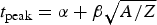 (4)$${t_{{\rm peak}}} = f\,(\sqrt {A/Z} ). $$