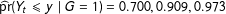 $\widehat{\text{pr}}(Y_{t}\leqslant y\mid G=1)=0.700,0.909,0.973$