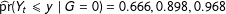 $\widehat{\text{pr}}(Y_{t}\leqslant y\mid G=0)=0.666,0.898,0.968$