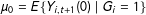 $\unicode[STIX]{x1D707}_{0}=E\{Y_{i,t+1}(0)\mid G_{i}=1\}$