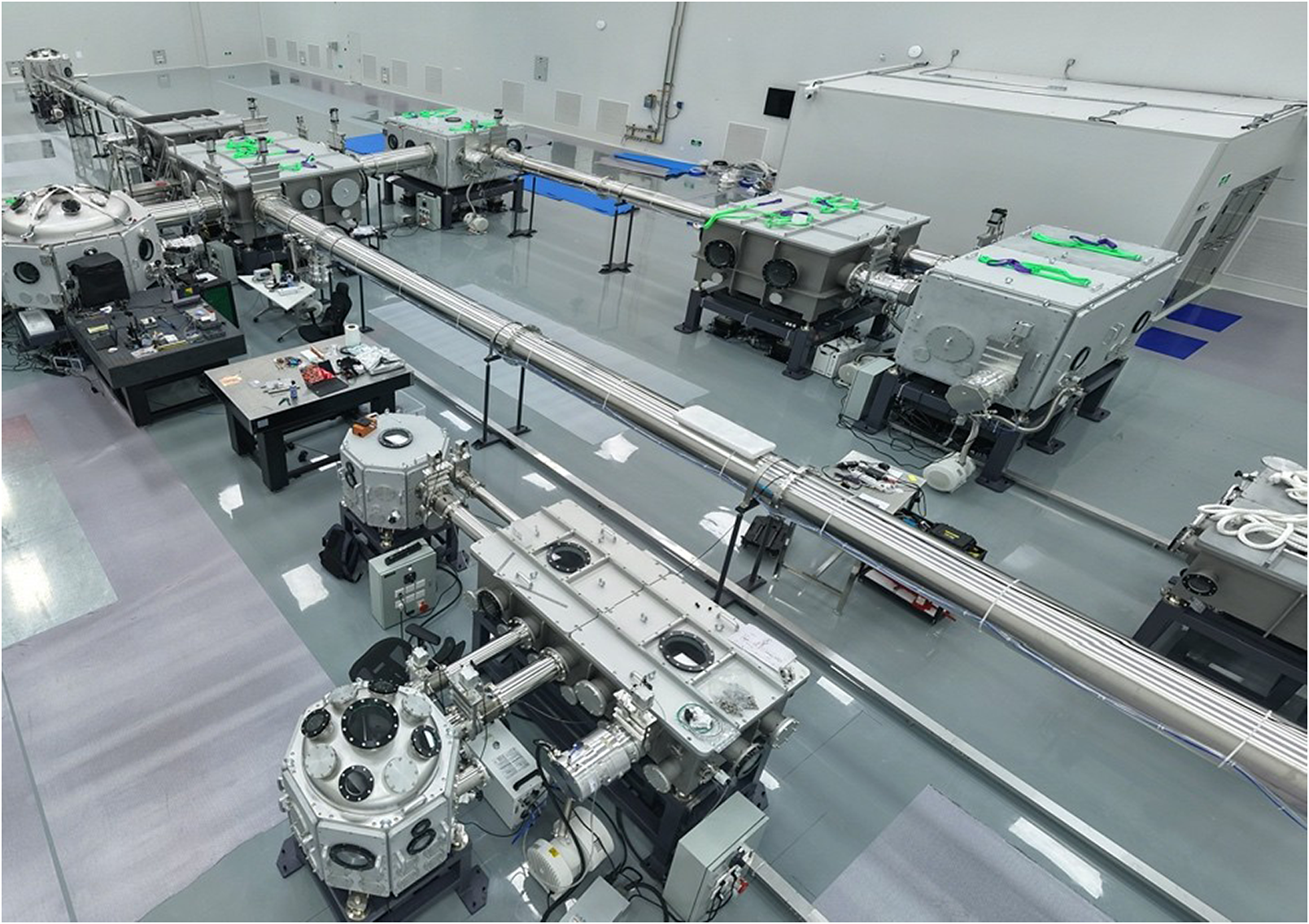 SJTU Tsung-Dao Lee Institute (TDLI)/State Key Laboratory of Dark Matter Physics – Laboratory Astrophysics Platform (LAP): the 3 PW beam line has been constructed, with an intensity (at focus) reaching 1023 W/cm2, plus two nanosecond beam lines with a total energy of over 700 J and a high-quality electron beam line with a maximum energy of 90 MeV. Currently, the construction of these four beam lines is nearing completion and is to be commissioned by the end of 2025 for cutting edge research on laboratory astrophysics. Figure 3 shows an image of the target area of the LAP at TDLI.