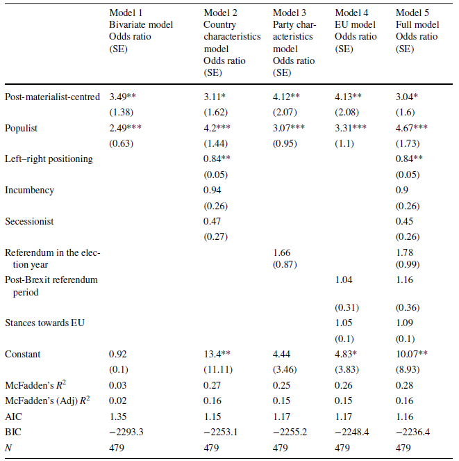 Table 2 Logistic models on the support for direct democracy in party manifestos from EU/EFTA countries